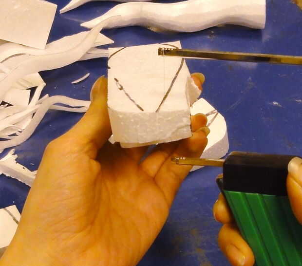 Sacar y cortar la otra vista de perfil, copiar en el otro cuerno y cortar otra vez.