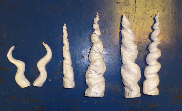 Las espirales en los cuernos de unicornio se hicieron vía aplicación muy cuidadosa de una pistola de calor. Ligeramente la superficie de la fusión también parece hacerlo un poquito más robusto y menos squashable.