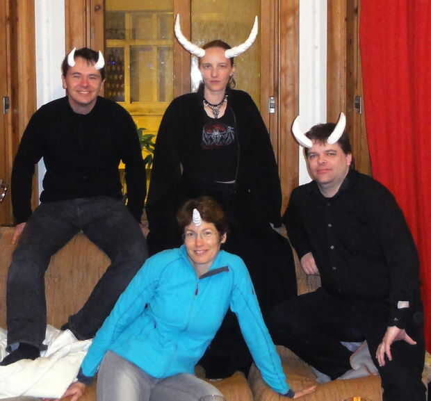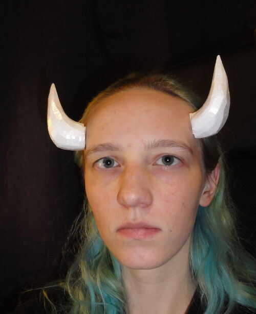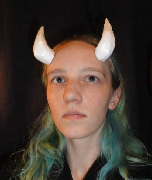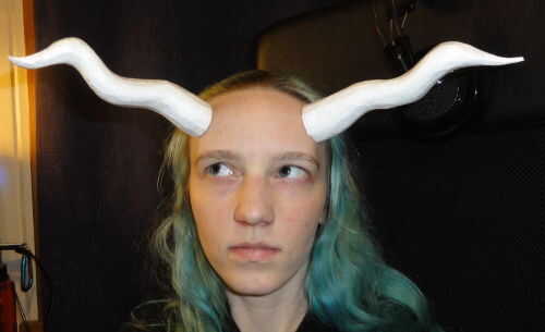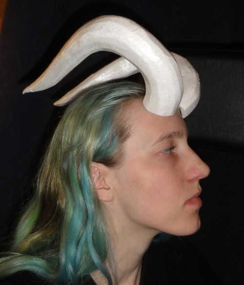 Hay muchas formas posibles que se pueden hacer y muchas diversas configuraciones en las que ponerte los cuernos. Son muy ligeros. A menudo olvidan que están aún allí, hasta que voy a empujar mi cabello hacia atrás o me inclino hacia abajo para agarrar algo y les golpea en una pared o contra una mesa. Siempre he usado goma de espíritu para mis cuernos, y tarda varios incidentes de cuernos-satisfacer-pared-o-marco de la puerta antes de que incluso comiencen a soltarse.