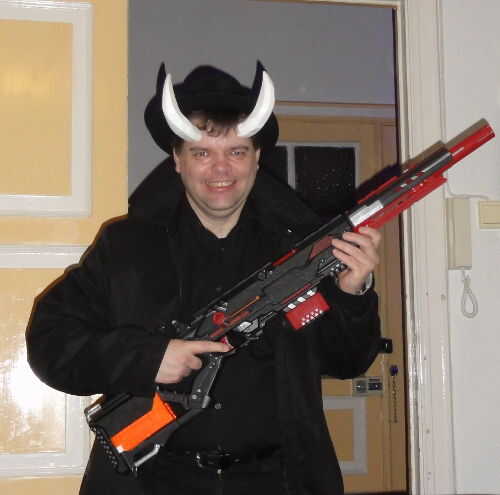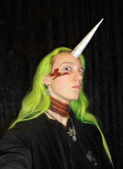 Siga las instrucciones en el adhesivo, hacer una alergia primero! - y aplicar cuernos a enfrentar. Proceder para aterrorizar a la población. Gore la primera persona para hacer una broma "caliente".