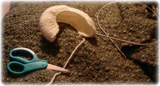 Cuando se han tejido las 20 repeticiones del patrón, su pieza punto debería parecerse a la imagen de abajo. Desechados y dejar un hilo largo para la costura hacia arriba.