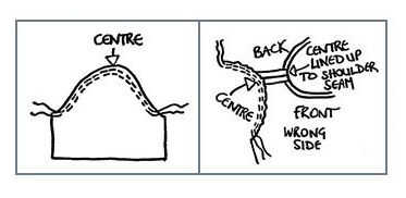 Coincidir con el centro del borde superior de la manga con la costura del hombro.