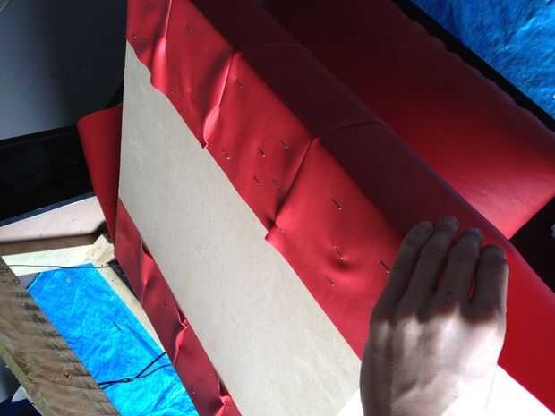 También compramos el vinilo rojo, cosas thickish, cuero siembra máquina agujas e hilo de rosca rojo fuerte.