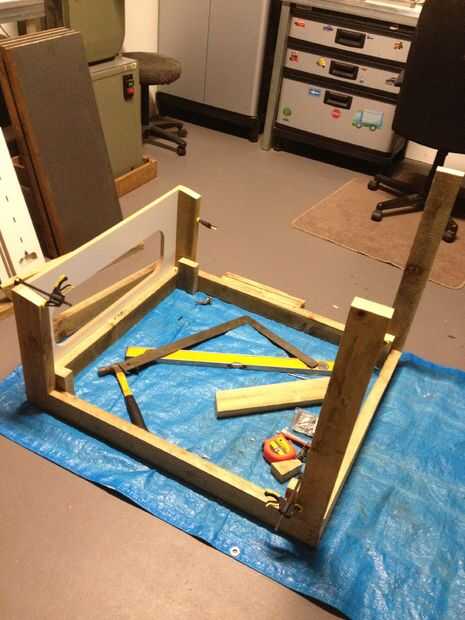y parte posterior más largo se corta cuadrado. y fue todo reforzado con un poco más pequeñas de madera atornillado a través de la base inferior y pegar encima de pedacitos de lado.