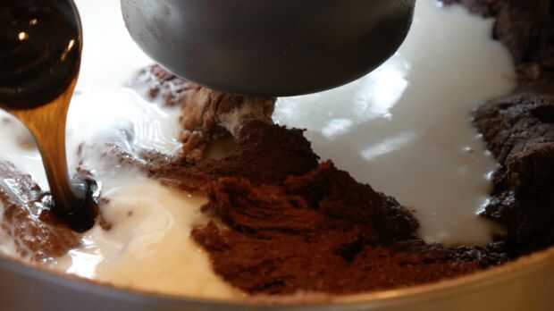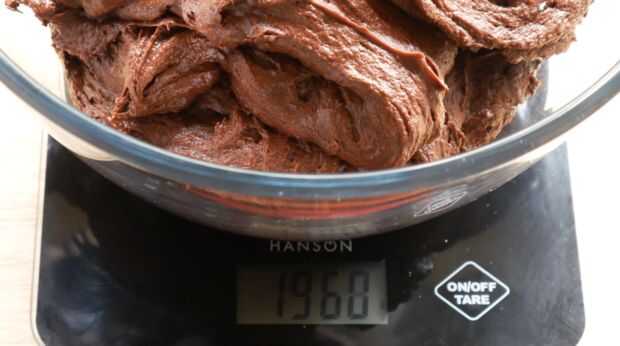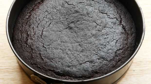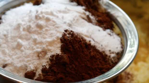 Bata la mantequilla y el azúcar hasta ligero y mullido. Añadir lentamente los huevos en la mezcla. Tamizar harina, polvo de cacao, polvo de hornear / soda y sal. Terminar añadiendo la mantequilla, la leche y el extracto de vainilla. Bate la mezcla hasta que se incorporen todos los ingredientes. Pesar la masa y dividir en 3 latas de la torta. Hornee a 200 grados C durante 20-30 minutos. Una vez horneado, dejar enfriar completamente.