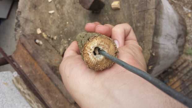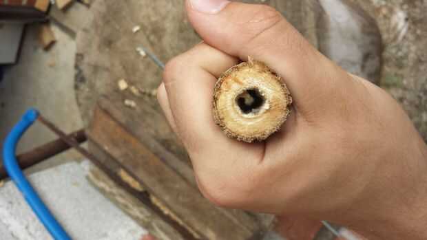 Tomar algunos larga varilla y tratar de empujar a lo largo de la parte entera de madera, así se debe eliminar materia esponjosa. Es la manera de cómo que lo estaba haciendo, si tienes alguna otra idea mejor post justo debajo porque estoy en busca de alguna manera mejor.