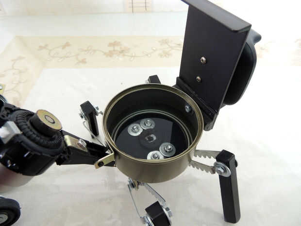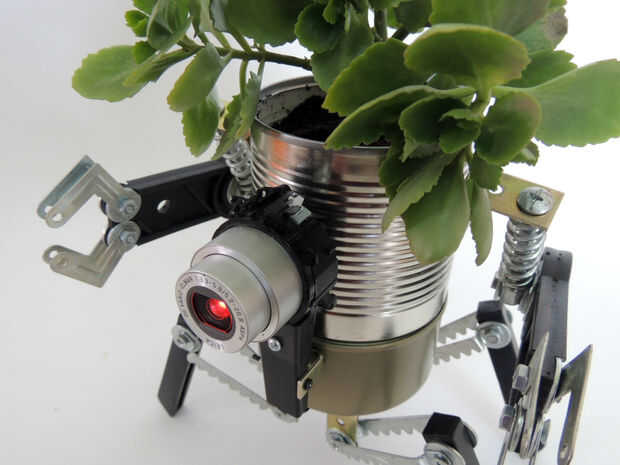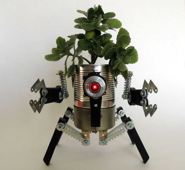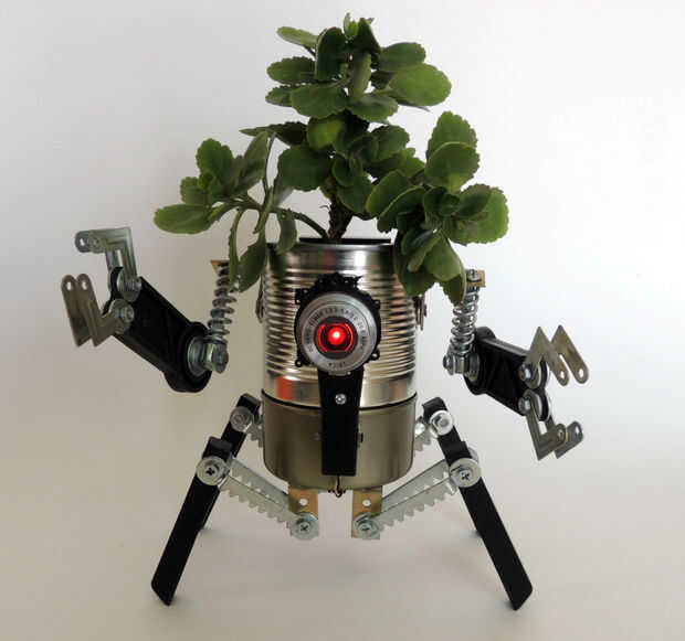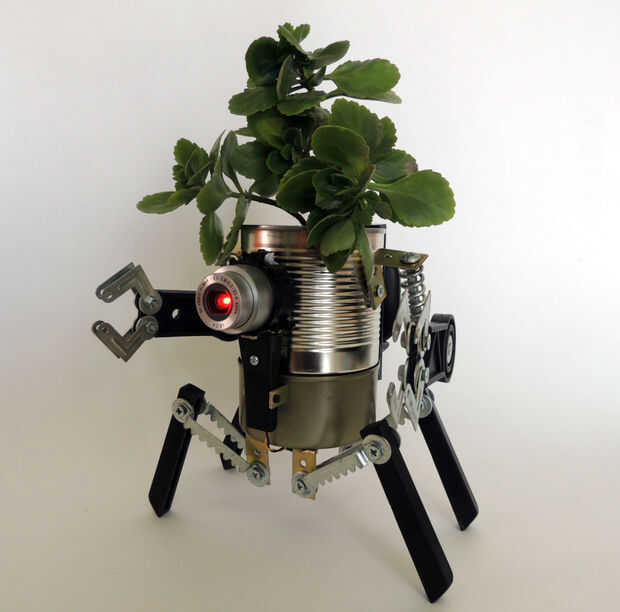 Esta es mi primera sembradora robo de dos módulos. El módulo superior es la jardinera por sí. El módulo base es un receptor de agua conectado a la jardinera. Cuando añades demasiada agua a la planta, el exceso pasa a través de los agujeros de la maceta y caer el módulo inferior. Cuando está llena, puede liberarlo y deshacerse de esa agua. Agua no se derrama su escritorio cuando usted riegue su planta, sin necesidad de bandejas adicionales debajo de la jardinera. Además, usted puede elegir entre dos opciones de plantador de Robo: el concepto completo (cuatro legged grande robot con pinzas) o sólo el módulo de fondo para plantas más pequeñas (abejón de arácnido). Este proyecto es completamente articulado, tiene un ojo de LED rojo y fue hecho de material desechado. El regalo perfecto para Navidad!