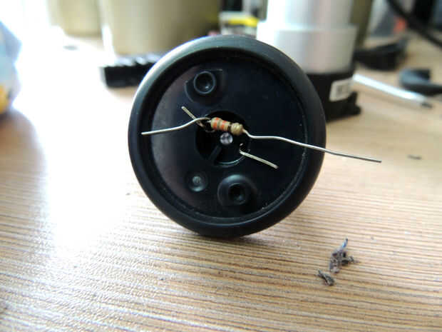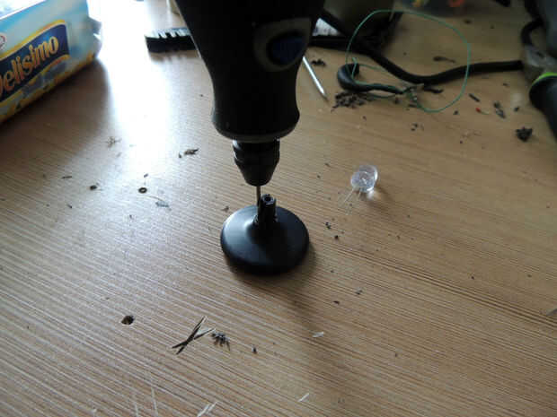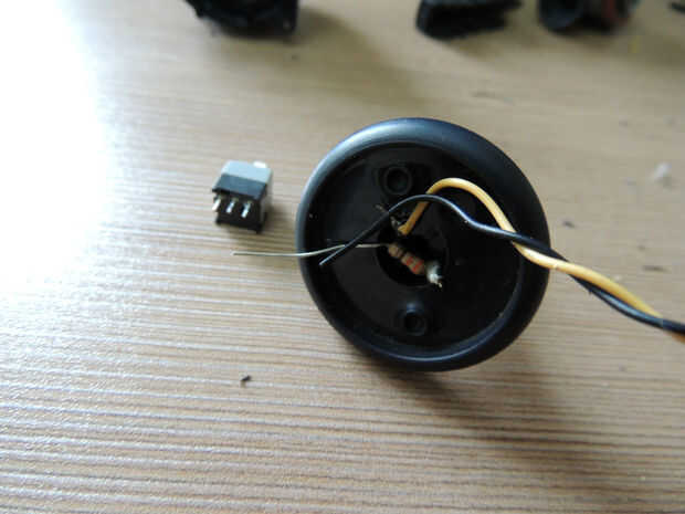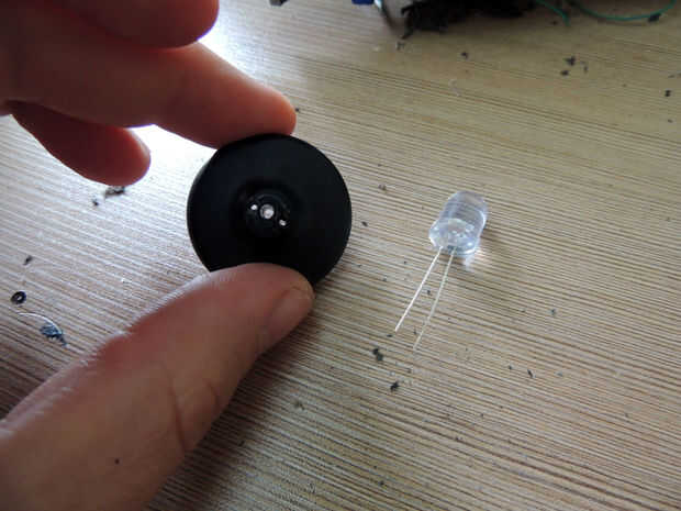 El circuito electrónico de este proyecto es simple: los cables de la caja de baterías son conectados a un LED (cable negro = polo negativo, pin más corta del LED, cable rojo = polo positivo, el pin más largo del LED). En el cable negro, había soldado un interruptor y la resistencia de 330 Ohm.