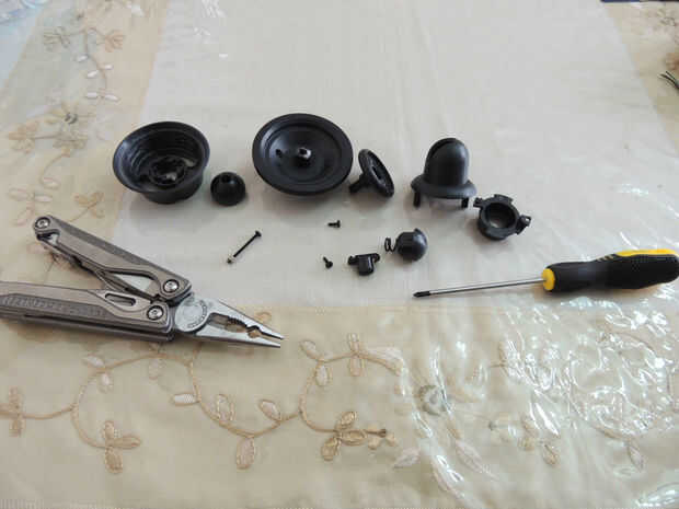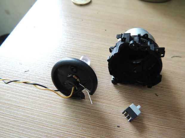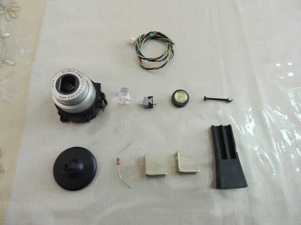 Hice el ojo usar la lente de una cámara digital y piezas de la base del teléfono móvil. Colocar un imán en la parte posterior del ojo, así se pegará a la jardinera una vez el módulo superior sobre el módulo inferior.