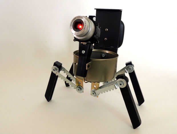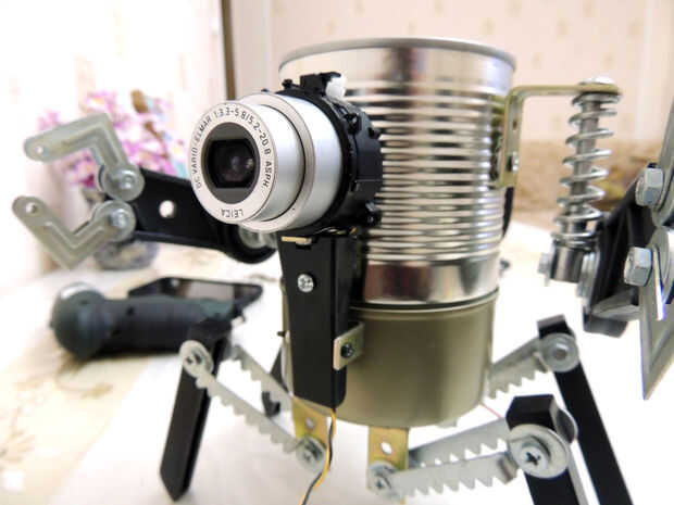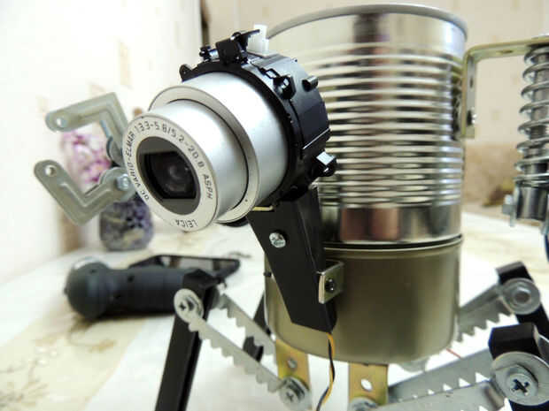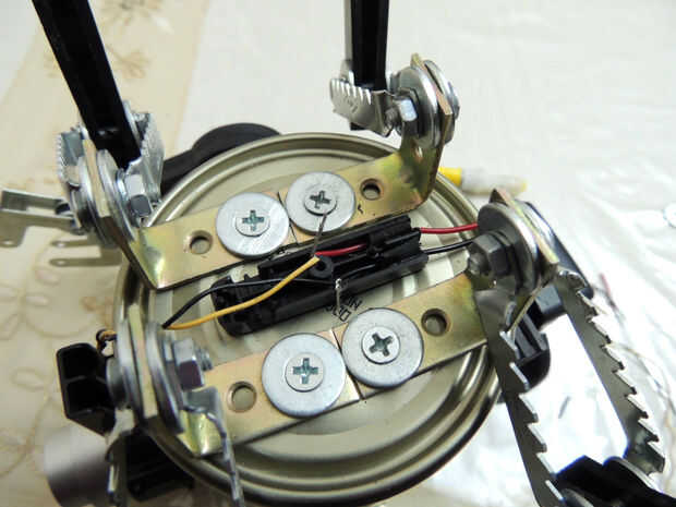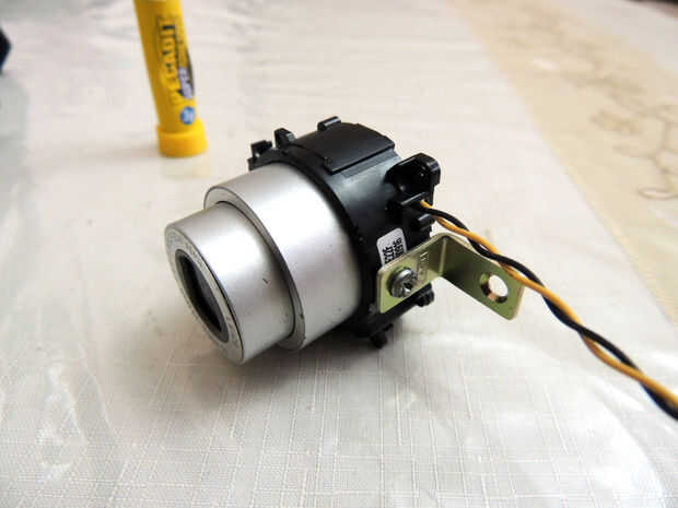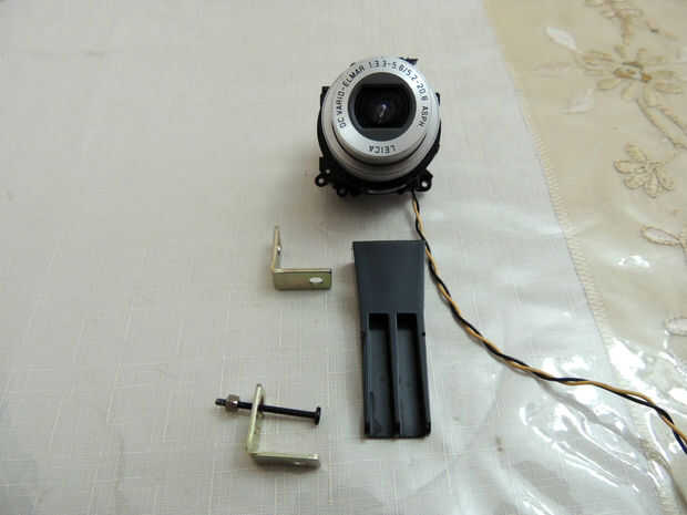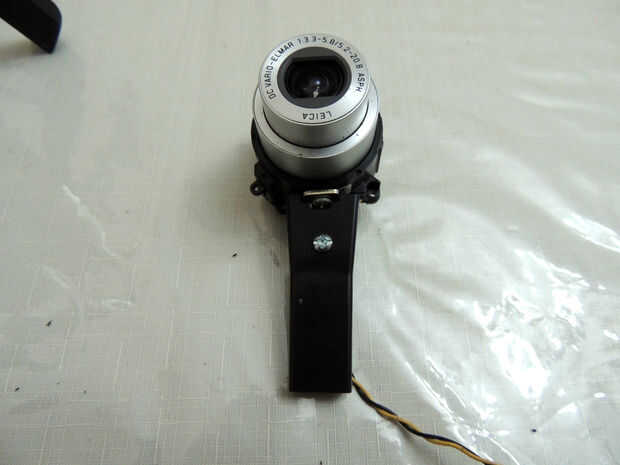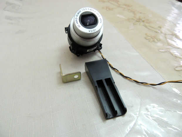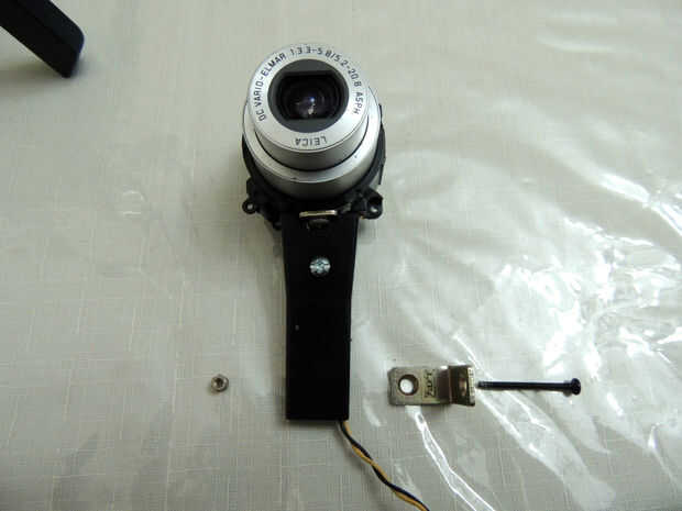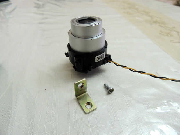 El ojo tiene un "brazo" con una articulación, por lo que puede desplazar cada vez que usted necesita eliminar el módulo superior, sin dejar el ojo para colgar sueltos como la manga de un mago. He utilizado un trozo de plástico de una impresora.