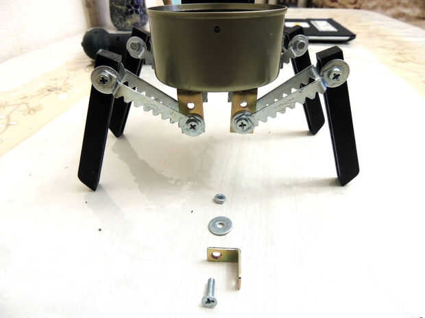 Acople un extremo del "brazo" a la vista; el otro extremo a un ángulo de hierro en la parte delantera del módulo inferior.