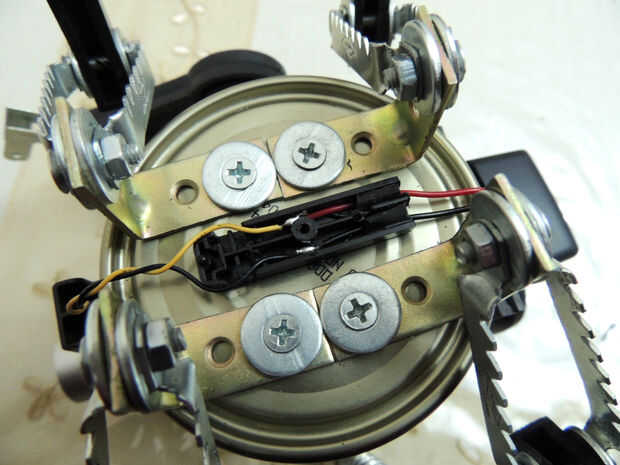 Conecte los cables del ojo a los cables de la mochila. Y el módulo inferior está listo!