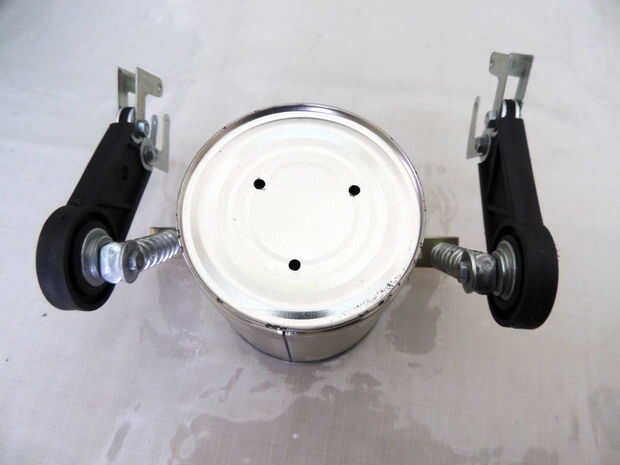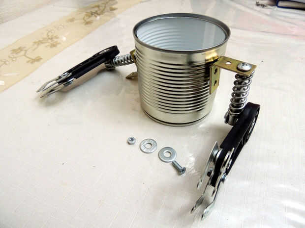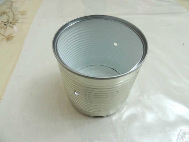 Tomar el mayor puede (de maíz). Perfore un agujero en cada lado de la lata, para unir los brazos.