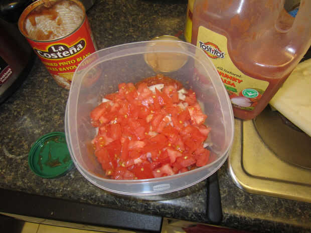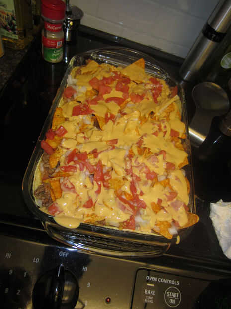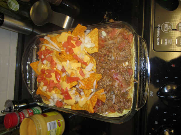 No estoy afirmando que mi lasaña es saludable en absoluto... mejor comer una ensalada... pero es el superbowl para llorar... así que esto es una falvorful y saludable te va a llegar... porque usted es reducir la cantidad de carne tradicionalmente utilizado por 1/3 y reemplazarlo con frijoles refritos, salsa, tomates y cebollas