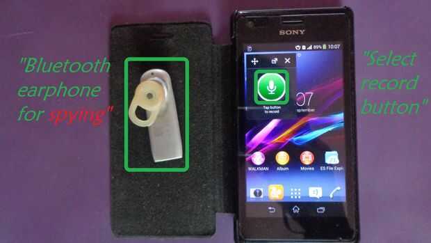 Sólo Conecte el teléfono al auricular Bluetooth y esconderlo en algún lugar cerca de la persona a quien vas a espiar.