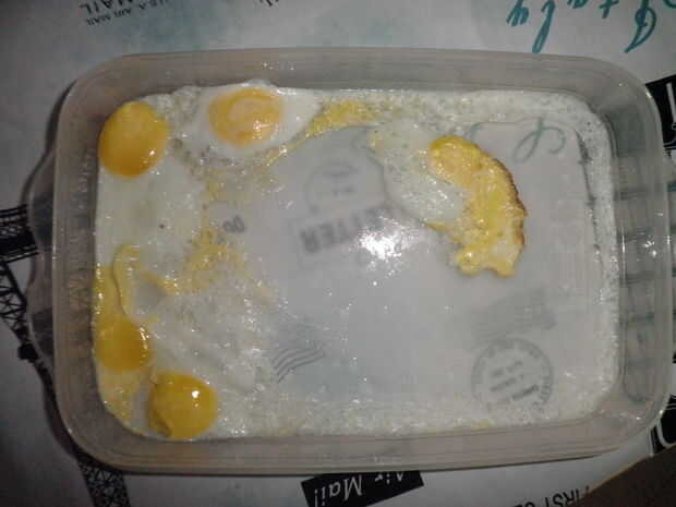 Y eso es todo. Tienes tu huevo frito mini nuked delicioso! Sólo tienes que poner sal en, pimienta, especias...