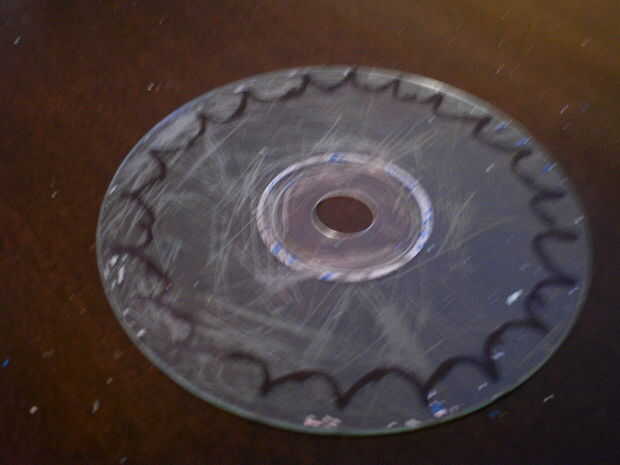Debe tratar y marcar un tipo de aleta de tiburón en el borde del disco para que la punta golpea el borde.