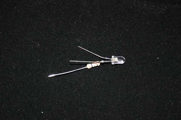 Añadir una resistencia de 100 ohm a la traílla larga del LED (lo suelda).