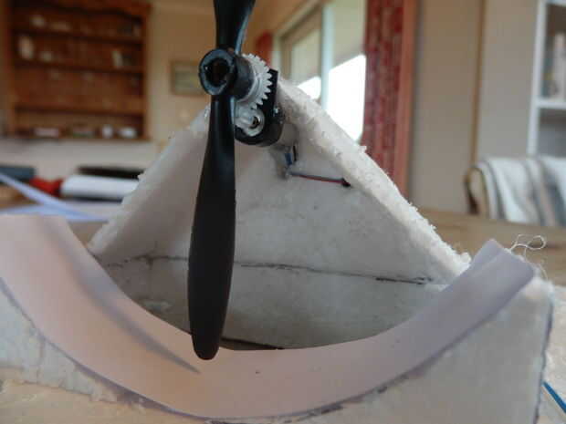 El conducto de aire, que también dobla como un montaje para el motor del pequeño helicóptero, es justo la esquina cortan de una pequeña caja de poliestireno. Sin embargo también podría ser modelada de un blanco de la tarjeta. La distribución de aire de la hélice es normalmente 2/3 para el empuje y 1/3 para elevación.