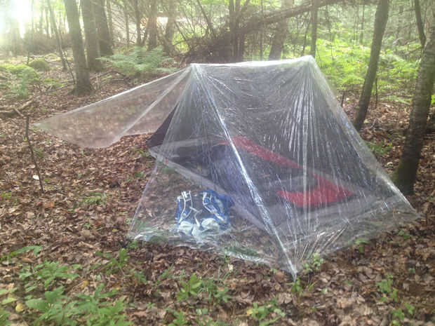 La lona se configura fácilmente con un par de estacas de 45" o 2 bastones de trekking telescópicos y una gran característica es que puede ser utilizado como una tienda de lona solo cuando van a acampar en entornos menos buggies o secador. Aquí hay un video que muestra el conjunto de la versión de seis luna diseños que podría servir de inspiración más allá de este Instructable.