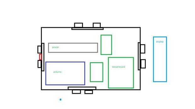 Voor de behuizing ben ik begonnen met alle piezas zo compacto mogelijk bij dirección te leggen zonder dat ze dirección en de weg zaten. Vervolgens heb ik een vierkant om de piezas heen firmado en heb dit opgemeten.