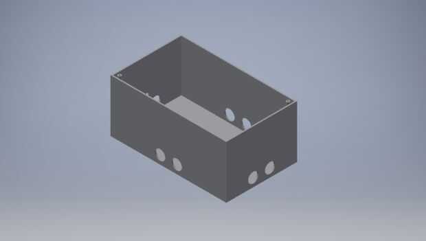 Se reunieron este afmetingen ben ik vervolgens aan de escoria gegaan om een modelo 3D te maken en Autocad Inventor. En de rechter boven en vinculador onder hoek zit een holle cilindros om eventueel más adelante een bovenkant op de behuizing te monteren. Veder zit er aan elke kant van de behuizing 2 ronde gaten voor de ultrasone sensoren en tot zit ranura er aan de vinculador kant nog een láser de gat extra voor een. Zoals te zien es op foto 1. foto de OP 2 es de werktekening te zien met alle afmetingen. De completa tekeningen staan en het pdf tekeningen 1.