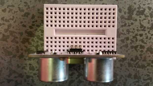 1. Enchufe el sensor en el tablero de pan para que queden los agujeros todavía abiertos detrás de él.