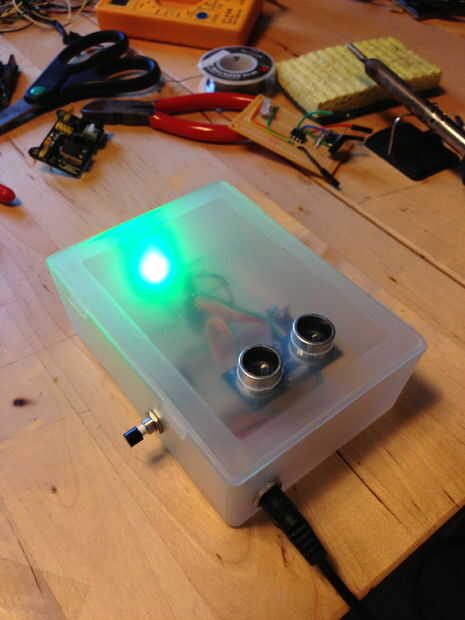 Vamos a hablar de la funcionalidad exacta. Sienten a distancia todo el tiempo y tiene un rgb LED para indicar si se va a seguir viniendo, frenar, detener o regresar. Un botón se utiliza para almacenar la distancia actual como la distancia de estacionamiento deseado. A pesar de que el LED es super bajo consumo de energía, soy ambientalista, así que vamos a programa un poder guardar modo para apagar el LED cuando no hay ningún coche en el garaje y unos 30 segundos después de que el coche ha aparcado en el mismo punto. Además, no podemos esperar que el coche estará estacionado en el exacto, hasta la pulgada, se fijó en el, por lo que incluimos una gama de aproximadamente 6 pulgadas de distancia. No quiero acabar moviendo hacia adelante y hacia atrás una docena de veces antes de llegar en derecho *. Esta es una gran mejora sobre los puedes comprar en Home Depot que sólo tienen ajustes 1, 2 y 3 pies de distancia y sólo 3 etapas indicador. Además, la gran caja almacenar unos look barato y todos tienen este diseño feo de la dos parte donde el LED o el sensor está en una cadena de tracción. No lo quiero en un garaje con clase.