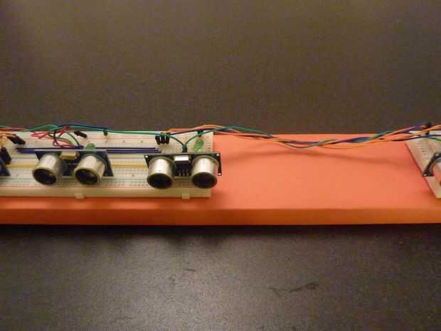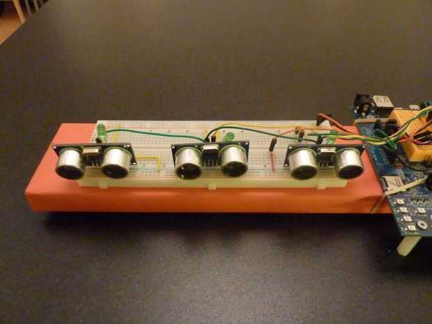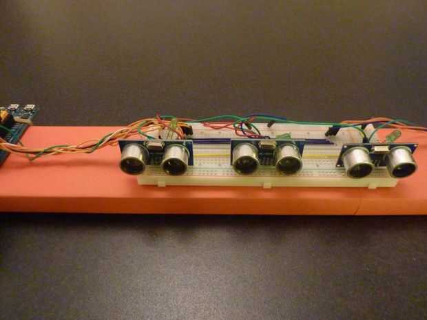 Dos o tres detectores ultrasónicos se colocan en cada tablero. Espacio que hacia fuera lo más lejos pueden.