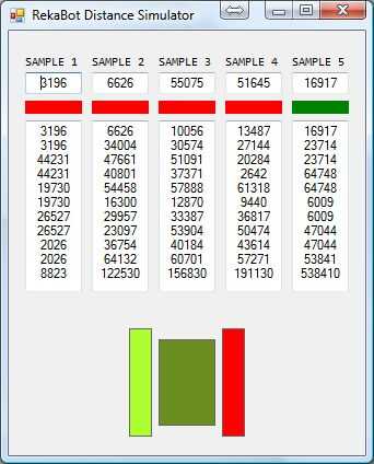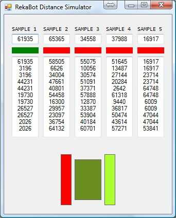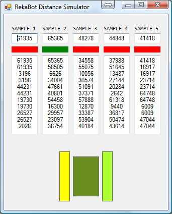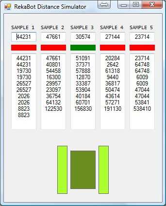 Escribí un sencillo software de PC para que su proyecto simular medidas de distancia y la manera de reaccionan de los motores, aquí es. Un desarrollo futuro sería conectar esto a lo bot (preferiblemente sin cables). Hay un montón de ejemplos de C# puerto serie manejo de programas en la web, sólo podría construir un robot de asignación fuera de este. Sólo tengo que averiguar una forma de añadir algunos codificadores mecánicos a la junta superior, por lo que puedo leer nuevamente la distancia que las cadenas de viaje.