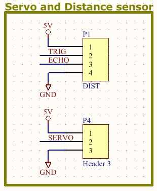 El motor servo y el detector ultrasónico gama conectan a estos pines. ¡ ADVERTENCIA! Para mi propia comodidad, cambió el orden de las patillas de la cabecera de servo! Esto significa que el enrutamiento y la conexión se verán afectados también. No hay modificaciones en la conexión HC-SR04, que será una simple hembra recta - hembra cable.