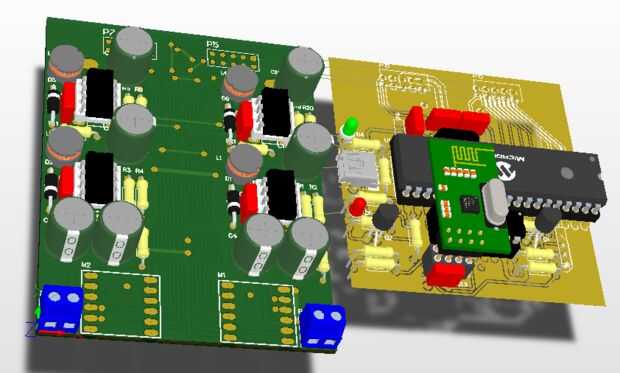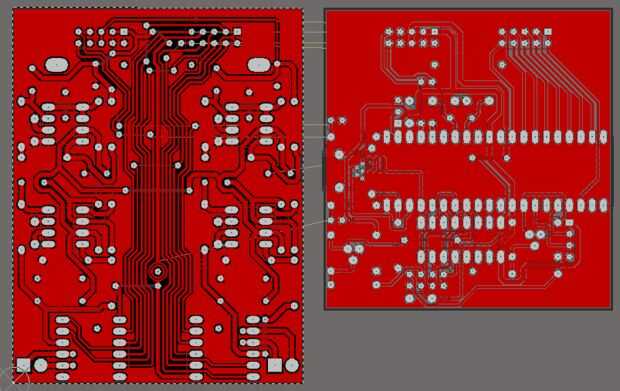 Cuando tablas de enrutamiento, debe probar y mantener los temas tan brevemente como sea posible, tan amplia como sea posible y lejos de cosas ruidosas. A veces puede respetar estas limitaciones, a veces no. Tendrás que sopesar que las limitaciones son las más importantes, y que son los que pueden tenerse en cuenta para un determinado nivel. Quería dos juntas que la anchura y longitud lo más corta posible, tuve que apilarlos. Esto significó que algunas líneas de control de la MCU fueron exactamente por encima de los inductores, no es bueno en absoluto. Decidí darle una oportunidad así, y suerte, no hubo ninguna interferencia. Después de todo, el consumo de corriente no es que alto.