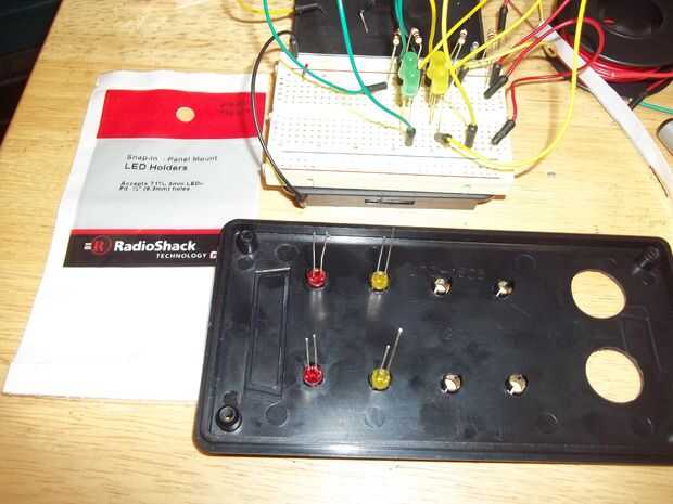 Refiriéndose a las notas de la foto 1, hay dos conjuntos de cables rojo/negro. El conjunto hacia la parte superior de la imagen es para un indicador LED y la otra es por el poder. Usé una verruga de la pared con una salida de 7.4v DC. Puede utilizar una batería de 9v CC, si lo prefiere, pero no quería tener que meterse con el cambio de las baterías.