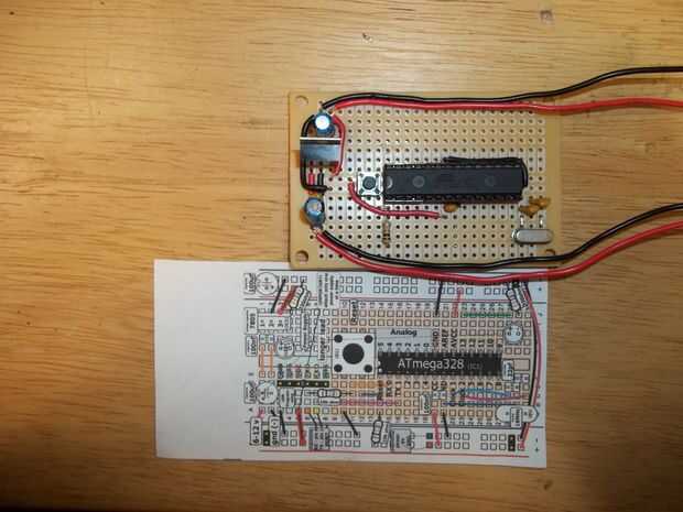 Una vez mi perfboard el circuito ATMega en él, preparé mi recinto. Puse las piezas (8 LED con resistencias y el sensor de ultrasonidos) en la tapa de la caja para determinar dos cosas: estética & alambre aproximadamente cuánto le necesito (lo siento, no hay fotos de este paso). La colocación puede ser de tu gusto. Tengo mi inspiración de otro Instructable, Sensor de estacionamiento ultrasónico por atatistcheff. Gustan mucho las de LED. :)