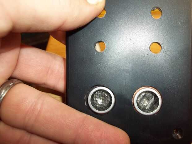 En la segunda foto, se puede ver que mis orificios de 5/8" pueden haber sido un"poco"grande. Pero, he descubierto que una arandela de goma de la manguera de jardín estándar encaja perfectamente sobre el sensor "barriles". Por lo tanto, me había pegado con cianocrilato (pegamento estupendo, pegamento de uñas de dedo) y luego los colores con un marcador permanente negro. Problema resuelto! :) También contiene el sensor casi al ras con el gabinete.