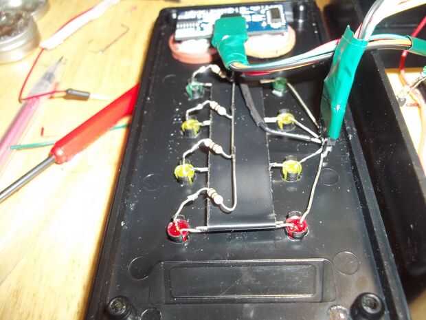 A continuación, montar el LED utilizando los soportes LED o pegamento y el sensor de ultrasonidos con pegamento.