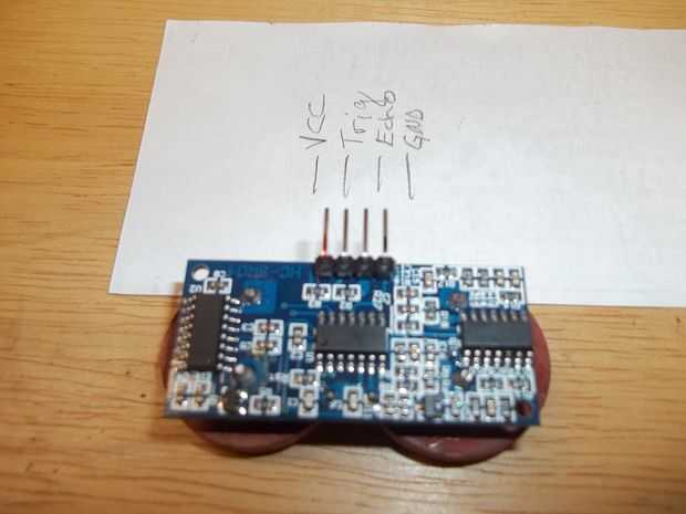 Los cables del sensor ultrasónico: cable rojo para cable de VCC (+), verde para cable disparador, naranja para cable de eco, negro para gnd (-)