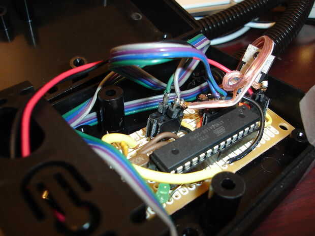 Ahora puede usar las clavijas macho encabezado en los extremos de los cables y conectar a los pines correspondientes en el tablero de la PC (uso el esquema!). Si utilizas tu propio Arduino entonces sólo tiene que utilizar el mismo asignaciones de pin como en el esquema.
