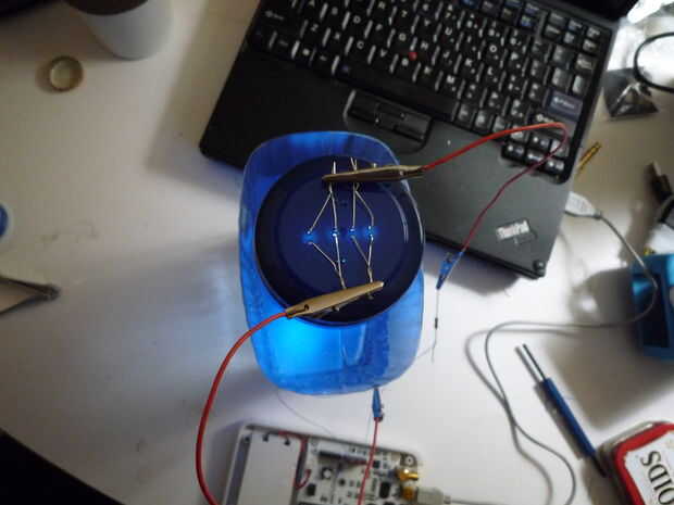 Puedes ver aquí que he usado solo pinzas a cada lado para alimentar los LEDs.