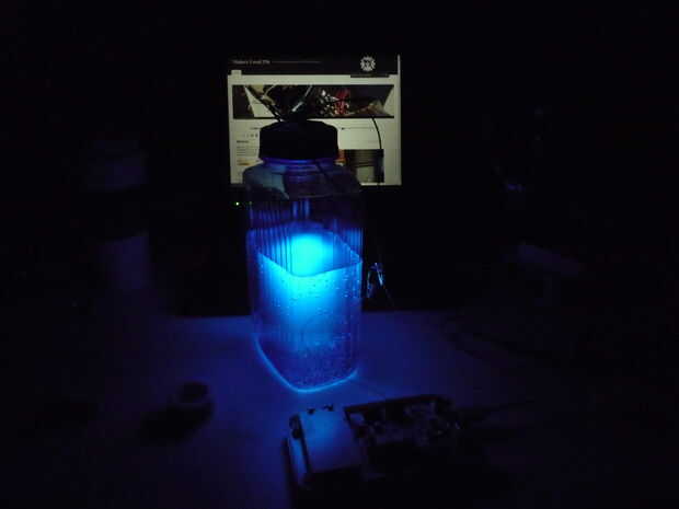 Primero probé alimentando los pernos positivos de los LEDs desde el pin de cinco voltios de mi Arduino, pero más tarde cambié a usar uno de los pasadores de modulación de anchura de pulso por lo que pude variar el brillo.