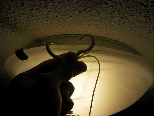 Por último, para conseguir esa verdadera sensación de cono del silencio, encontrar un lugar adecuado para colgar su umbrelAudio en el techo.  Con los ganchos de metal recubierto de goma, pude colgar mina en lámpara de mi dormitorio.