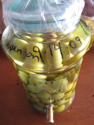 Ingredientes:ciruelas duro, de color verde de 2-3 librasAzúcar 1 C.2 botellas grandes de sake