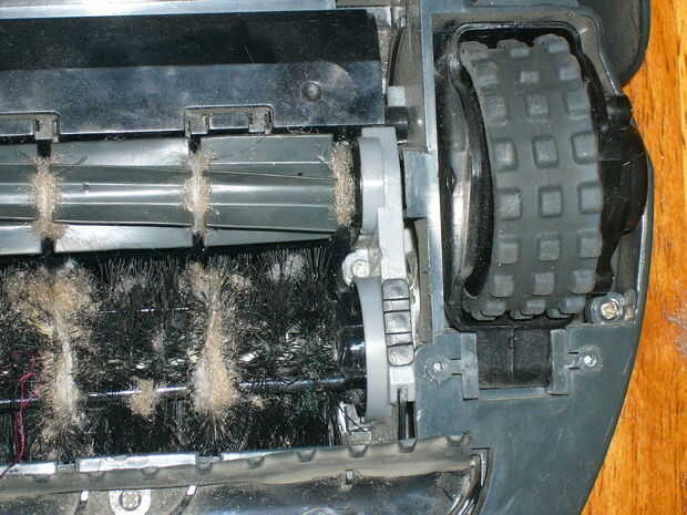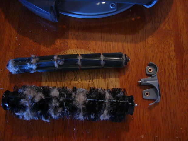 Ahora, tire suavemente hacia arriba el cojinete portador. Los cepillos deben subir con ella. Sácalos de la robusteza y tirar para el derecho a eliminar los pinceles del lado conducido del robot.