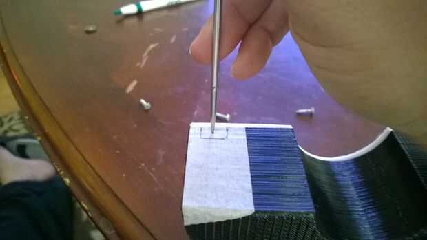 Mediante una selección, hecha muescas en el centro de cada ficha como punto de partida para pretaladrar los agujeros para los tornillos de sujeción