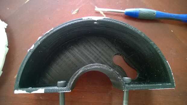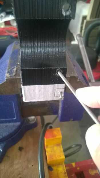 ¿La solución? El agujero fue presentado en pequeñas cantidades (en el lugar marcado con un marcador de metal blanco), lo suficiente a la deriva el perno de cabeza lejos del centro y sentarse a ras contra el interior borde del cuerpo