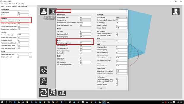Basado en la experiencia con mi impresora 3D, tuve que realizar cambios en algunos de mis valores como se describe a continuación.