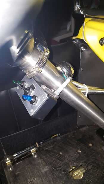 No puedo usarlas porque el botón de cuerno (en las dos últimas fotos) viene con una abrazadera metálica integrada que actualmente tiene el panel de interruptores cuadrados en su lugar. Tengo pensado utilizar esta abrazadera para asegurar la caja del interruptor de nuevo a la columna de dirección