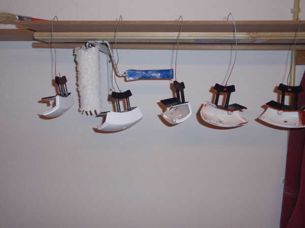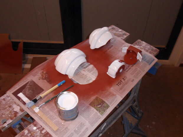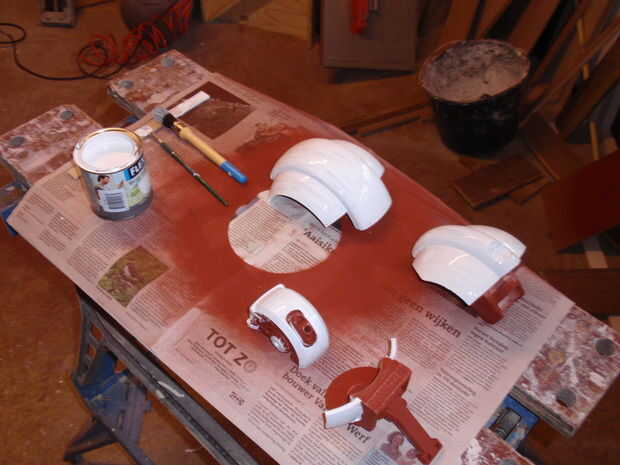 Primero pinté el blanco porque negro cubre mejor que negro blanco cubiertas de blanco. También he añadido unos renders a las fotos para darte una idea de lo que las piezas a pintar qué colores.