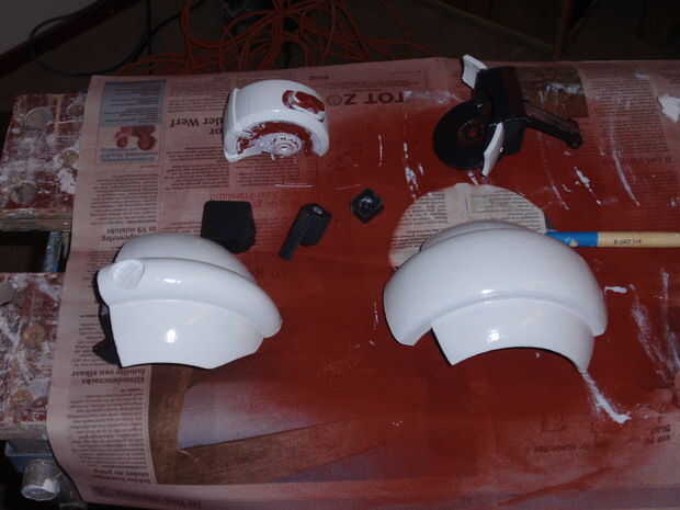 Desengrasar todas las piezas y aplique imprimación plástico para hacer las siguientes capas de pegar correctamente. La cartilla del llenador probablemente se pegará a la parte de todos modos, pero es mejor sólo para asegurarse. Sólo necesita una capa plástica fina. El alisado de la parte va a pasar con la cartilla del llenador.
