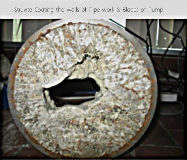 El problema es un subproducto químico que se forma cuando el fosfato en orina bonos un Ion de Metal como el magnesio y el amoniaco para formar [Sruvite]. Diposits de estruvita , como un tipo de cal que es fosfato de amonio magnesio. Este producto causa estragos con todos los sistemas de plomería y filtración que ayudan a hacer nuestra agua aptos para el consumo.
